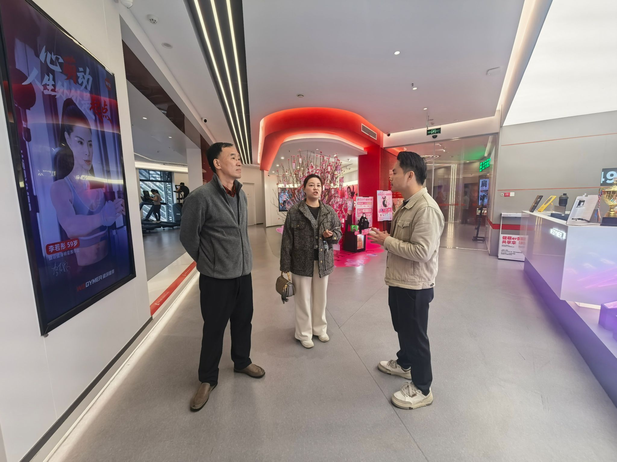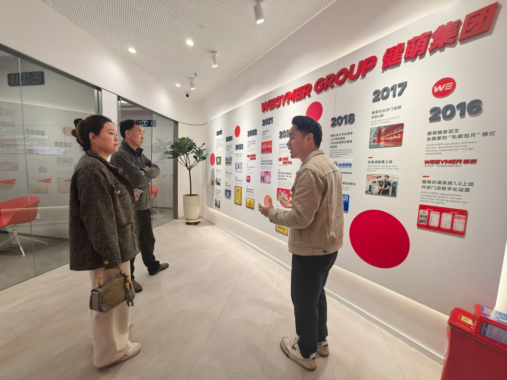 在健萌体育相关负责人的陪同下,学院领导一行首先参观了企业的办公环境及核心业务展示区。作为一家拥有传媒基因的体育产业集团,健萌体育详细介绍了其独特的“按月定制训练规划”和“全场馆1V1纯私教”服务模式。