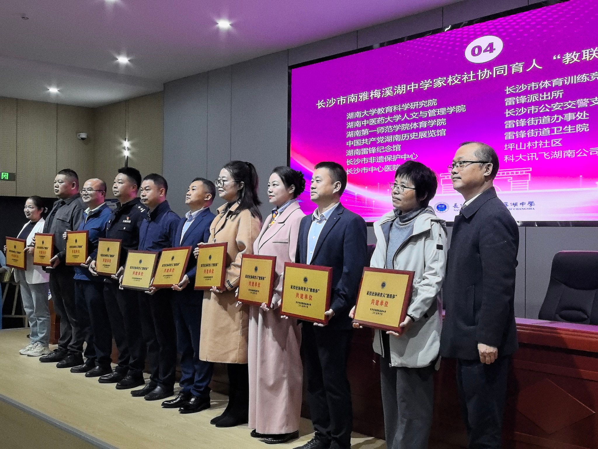 2025年10月30日,长沙市南雅梅溪湖中学“教联体”成立大会隆重举行。体育学院副院长郭宇、体育教育系主任单思文受邀出席,接收“家校社协同育人‘教联体’共建单位”授牌。此次合作标志着我院与优质中学实习基地的合作迈入深度融合、协同发展的全新阶段。