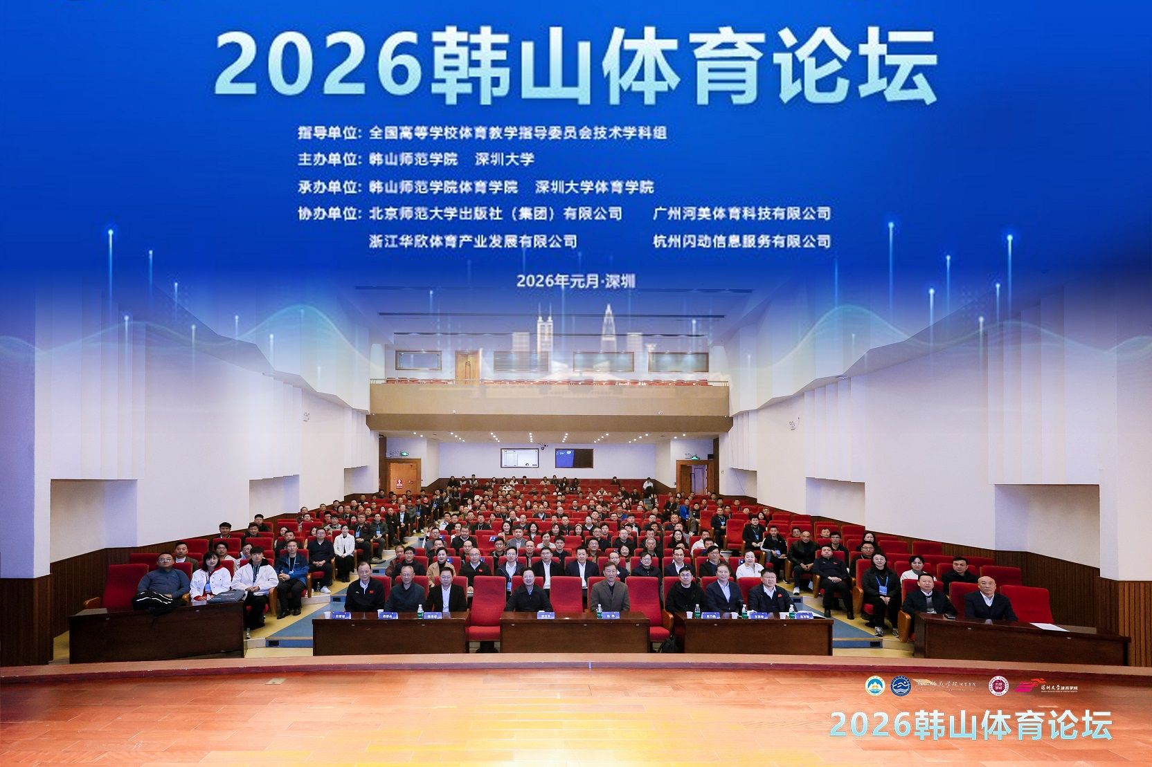 2026年1月10日至12日,由韩山师范学院体育学院与深圳大学体育学院联合主办、全国高等学校体育教学指导委员会技术学科组指导的“2026韩山体育论坛”在深圳大学成功举办。论坛汇聚全国体育领域专家学者与高校体育教育骨干力量,我院李梦龙院长、谭飞主任、单思文主任受邀参会,深度参与学术研讨与交流。