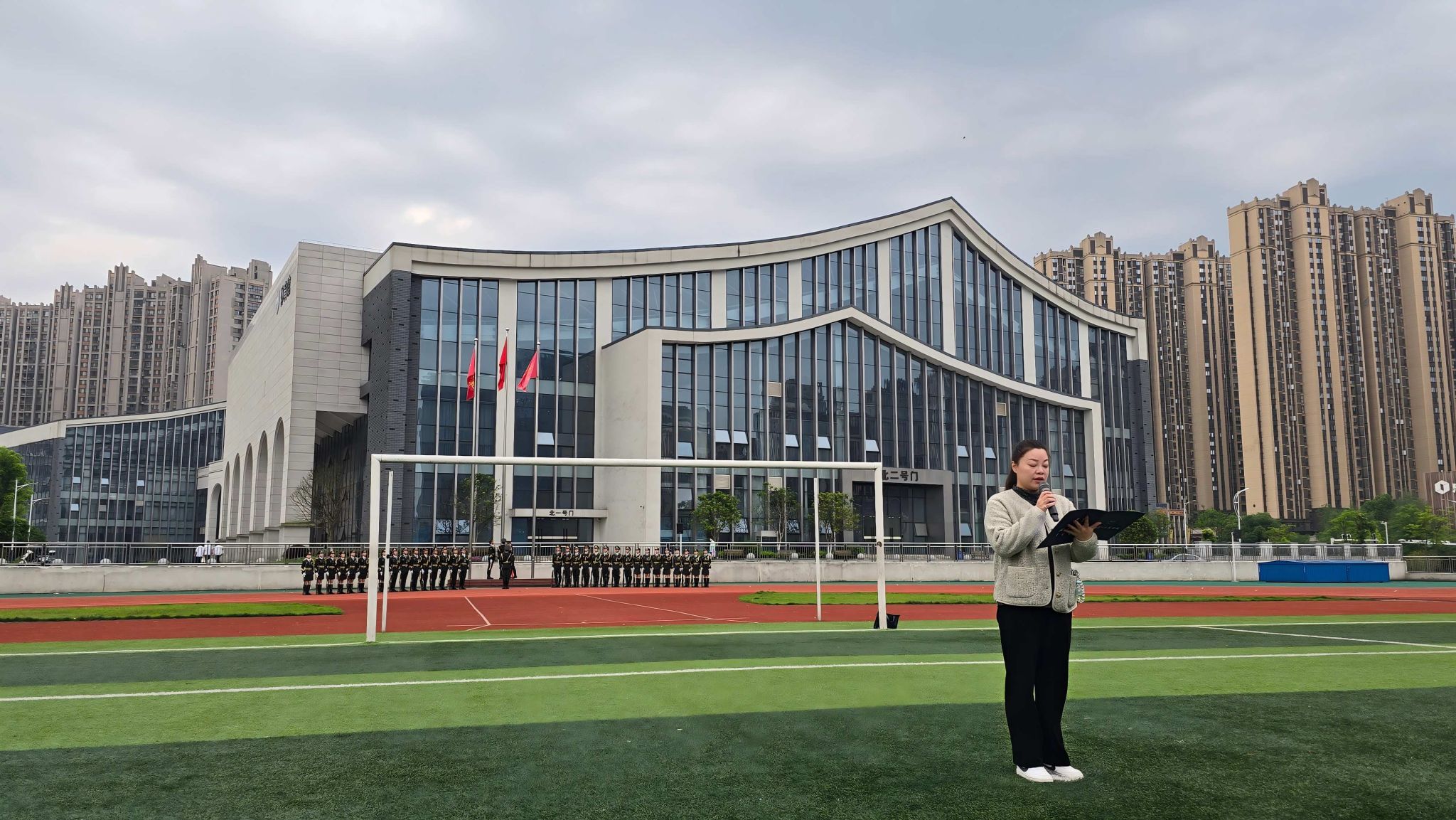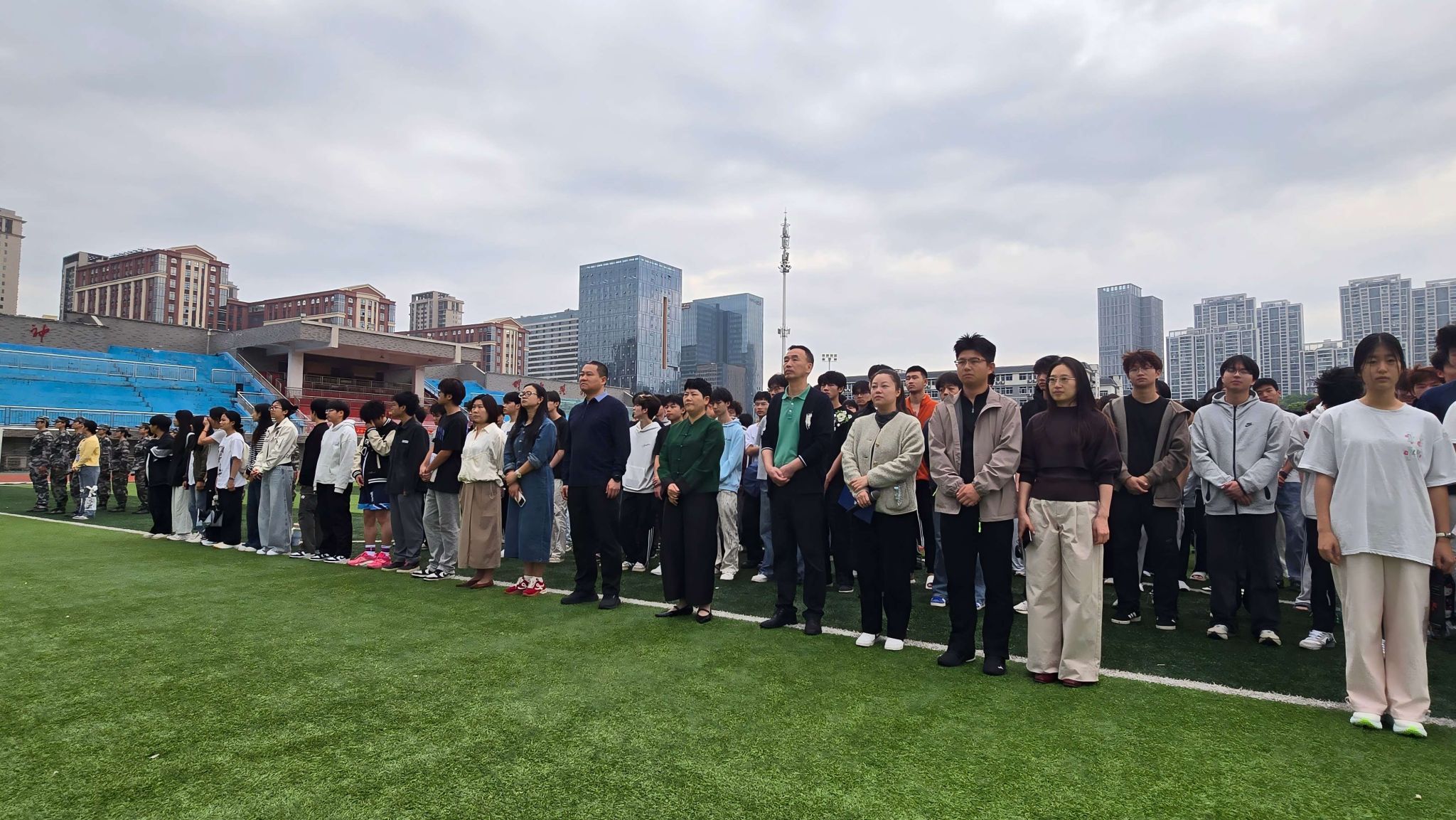 4月20日清晨,东方红校区田径场庄严肃穆,体育学院在此隆重举行升国旗仪式。学院党政领导、全体辅导员、班主任代表及体育学院全体在校学生共800余人齐聚一堂,共同见证这一神圣时刻。仪式由学院党委副书记朱建伟主持。