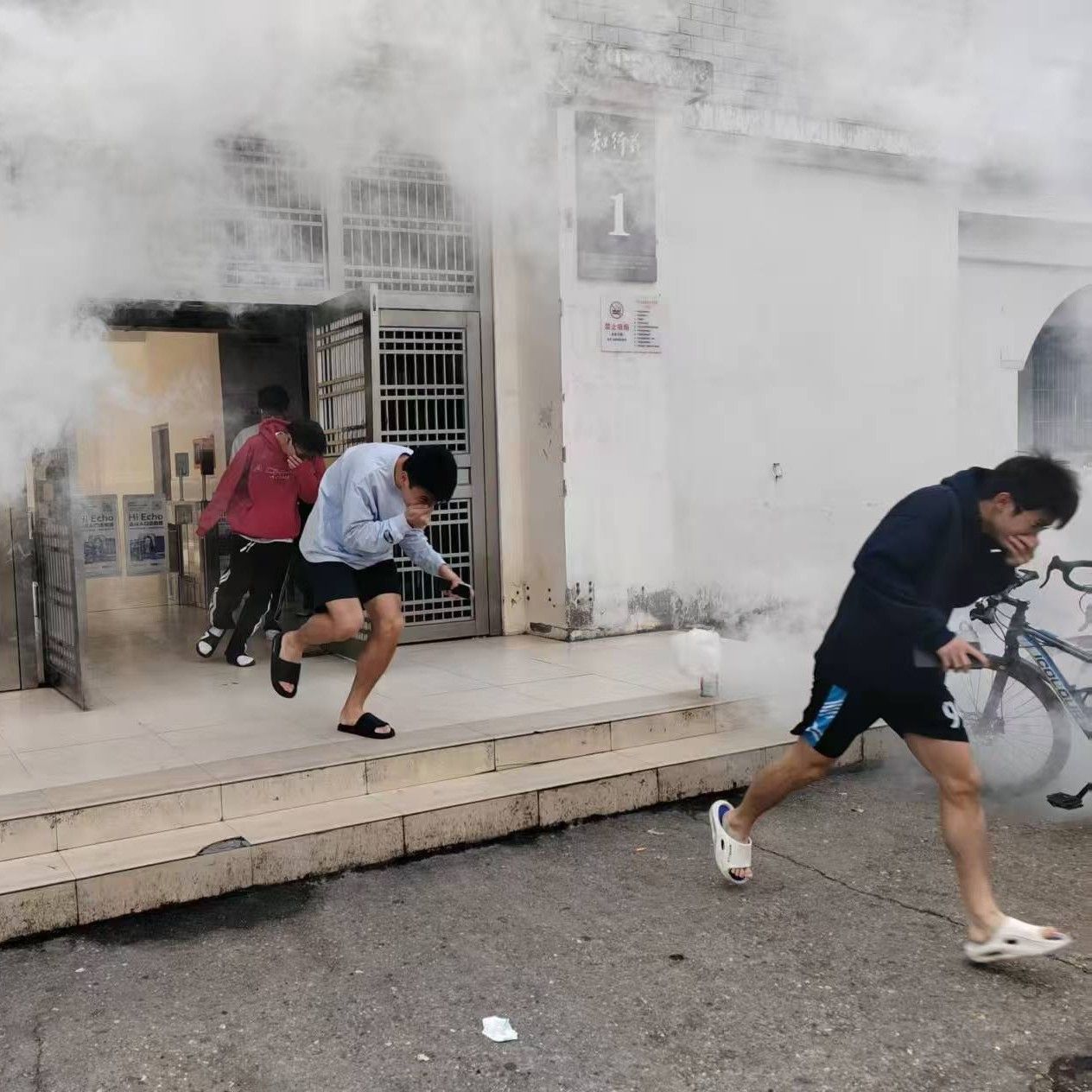 消防安全是体育学院安全工作的重中之重。本次演练旨在贯彻“预防为主,生命至上”的消防方针,通过模拟真实的火场环境,检验体育学院消防应急预案的可行性和有效性,确保在火灾发生时,能够快速、高效、有序地进行疏散和初期扑救,最大限度地保护生命财产安全。2025年11月4日下午15时整,随着急促的消防警报声响起,演练正式拉开帷幕。模拟火点设置在学生寝室15栋二楼122寝室,现场瞬间浓烟滚滚(使用烟雾模拟装置)。各区域安全负责人立即到位,指挥人员用湿毛巾捂住口鼻,弯腰低姿,按照预定的疏散路线迅速撤离。整个过程紧张而不慌乱,短短2分钟内,所有参演人员均安全、有序地疏散至指定的紧急集合点。 到达集合点后,各小组负责人立即清点人数,并向现场总指挥汇报疏散情况,确保无一人遗漏。演练结束后,消防大队彭教官对本次活动进行了总结讲话。他首先对全体参演人员的严肃认真和高效有序表示肯定,并强调:“安全无小事,防患于未‘燃’。本次演练不仅是一次实战练兵,更是一次深刻的安全教育。希望大家能将今天学到的知识和技能内化于心、外化于行,在日常工作和生活中时刻保持警惕,共同营造一个安全、和谐的环境。”